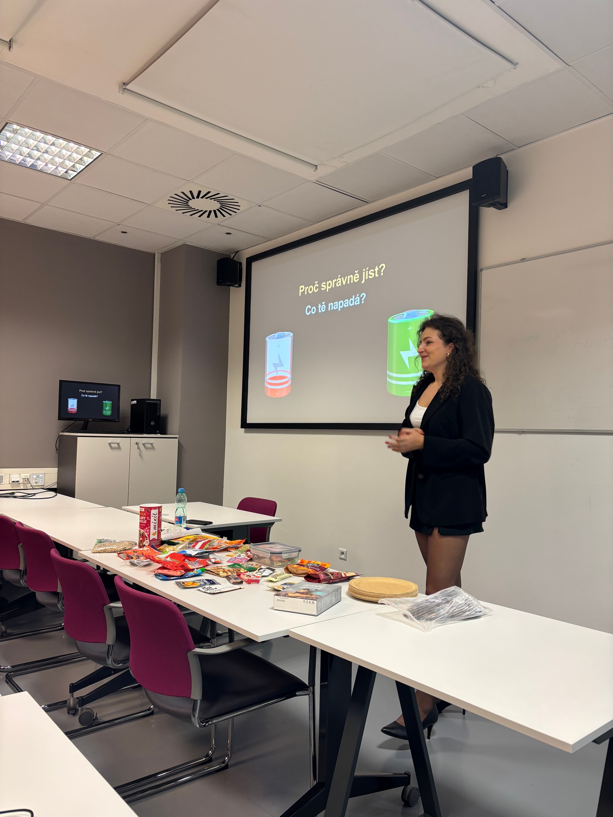 Účastníci se sešli v 17 hodin ve školící místnosti knihovny ČZU. Pozvánka byla určena zejména starším skupinám – oranžové a červené – ale dorazit mohli i rodiče mladších dětí, pokud je téma zajímalo. Výhodou bylo, že setkání nebylo jen teoretické. Anička do programu zařadila i praktickou část, krátké nutriční „cvičení“ a společnou diskusi, během níž mohly děti i rodiče sdílet své zkušenosti a ptát se na konkrétní situace z praxe.